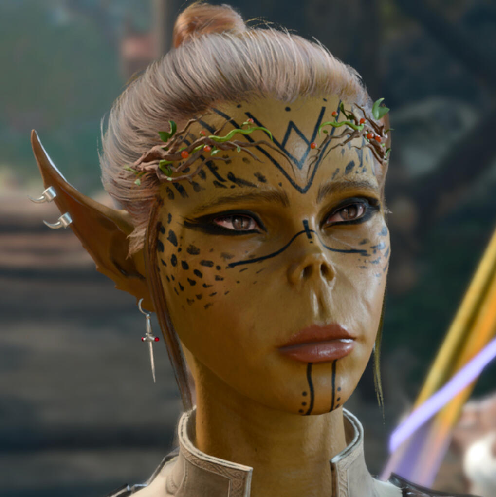001 Ambrozia Tremaine spent much of her years traveling after attending university, realizing that the world was much larger than the walls of Baldur's Gate. During her travels, she saw the beauty of the Sword Coast, and its horrors. It was when she saved a young elf that she was abducted by mind flayers and subsequently began her journey to rid herself of the tadpoles. Having been successful, she has once again begun to travel through the coast, now with Shadowheart at her side. The only thing she wishes for still is that her love might one day be enough for the God of Ambition. 002 If Dame Alyin is the Moon Maiden's sword, striking down enemies in her name, then Atlas Frye is her shield, standing between her and evil. The second son to a wealthy family of devout Selunites, Atlas found his calling in the protection of the innocence. He seeks to bring Selune's light to all people across the Sword Coast and introduce them to her loving embrace, especially his Sharran beloved. 003 Deemed the 'Voice of the Cosmos' by her fellow esteemed wizards, Astraia Damaris has spent much of life being valued solely for her innate clairvoyant talents. It was only when her premonitions appeared to spell doom rather than fortune did her value suddenly dwindle and her credibility questioned. Bhaal began to manipulate her abilities, speaking only of death and blood. She seeks to free herself from her so-called father's grasp and restore the balance she once held between good and evil.
